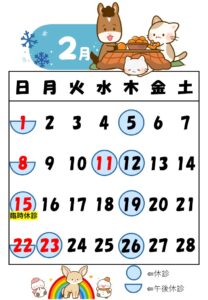 ※13:00〜16:30 予約診療、手術※診察受付は診察時間終了15分前まで※初診の方(カルテのない子)の受付は30分前まで